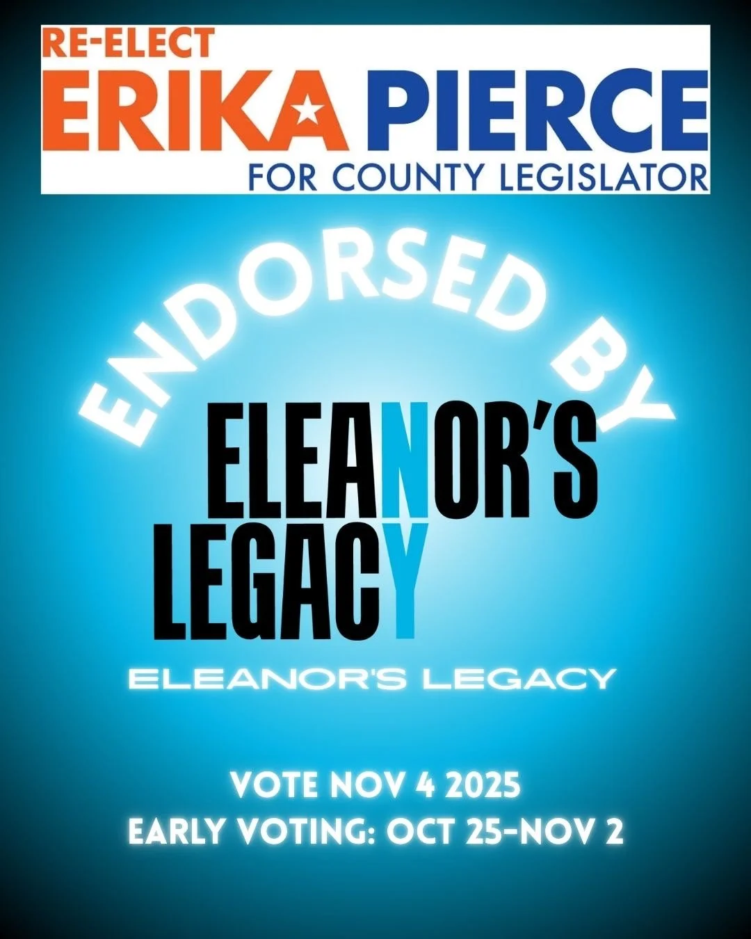 “It is an understatement to say that Erika Pierce hit the ground running – she hit it racing! And she’s doing a spectacular job. She painstakingly attends to every issue affecting the communities she represents – takes every call and is incredibly responsive. She is a terrific partner to have at the county level and I enthusiastically endorse her re-election.”