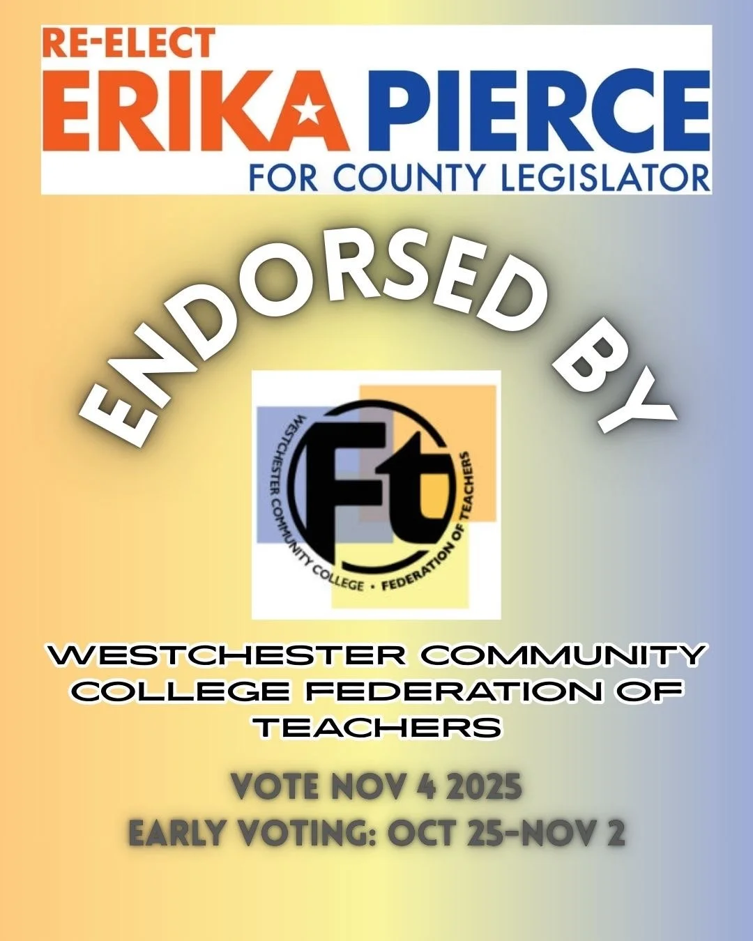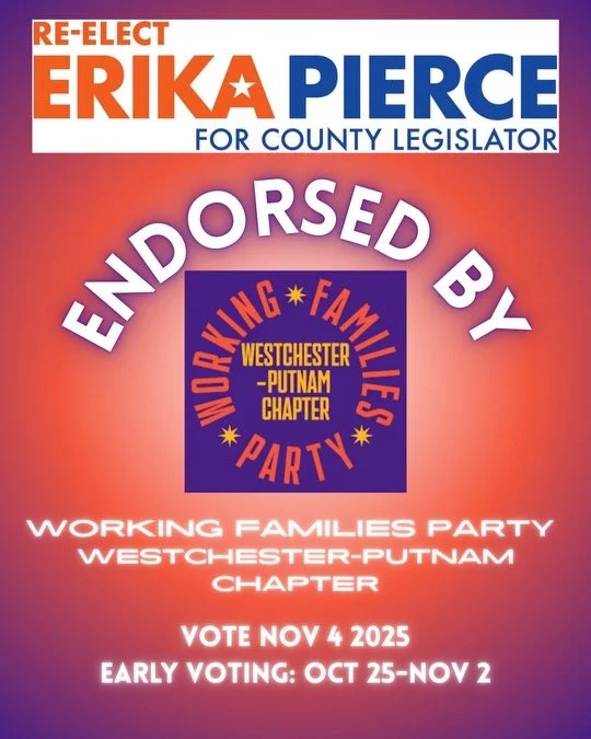“I am thrilled to endorse Erika Pierce for re-election as County Legislator for the 2nd Legislative District of Westchester. Erika is a committed environmental steward and strong colleague on behalf of her district. We need Erika reelected to office this November. I strongly endorse her for re-election.”
